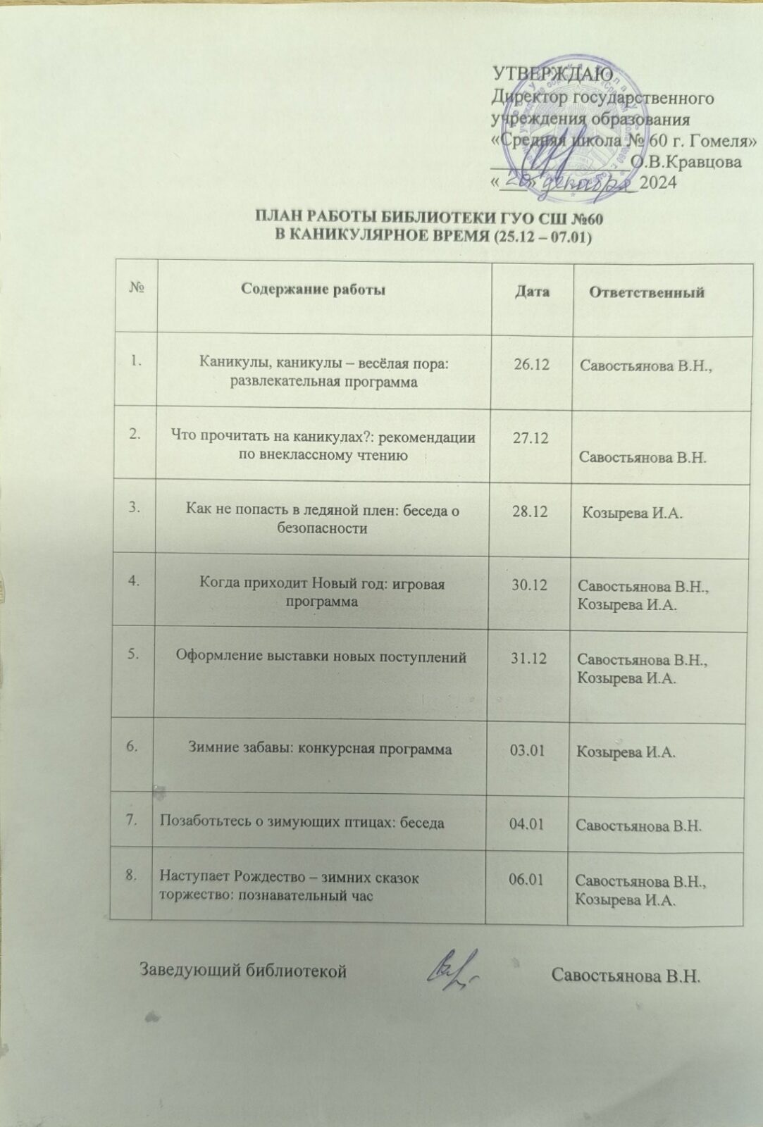 План работы библиотеки