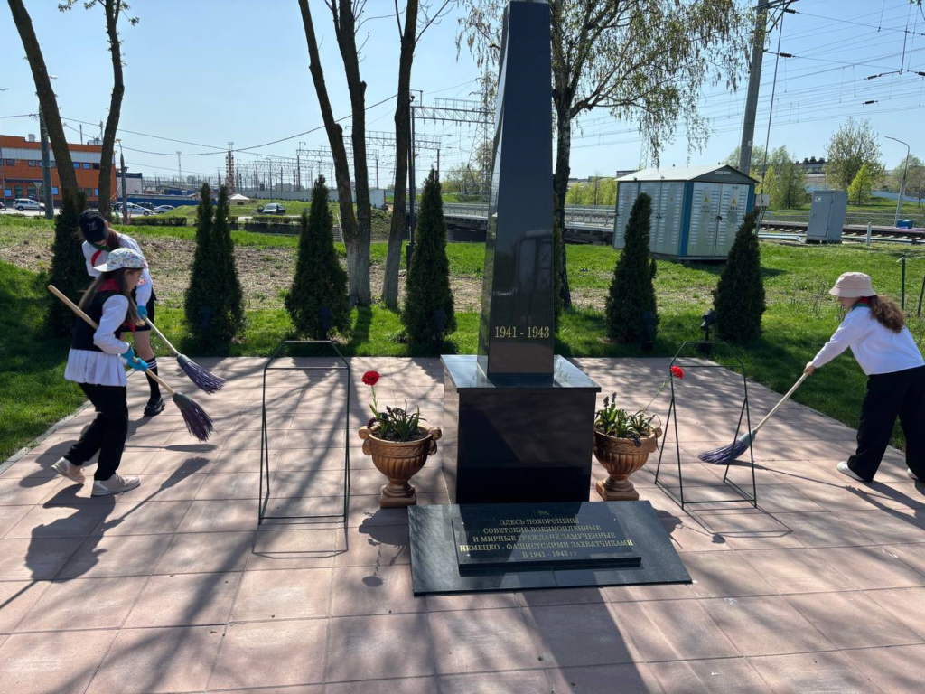 С целью военно-патриотического воспитания, в преддверии празднования 80-летия Победы советского народа над фашистскими захватчиками, активисты пионерской дружины имени Владимира Щербацевича навели порядок возле Братской могилы советских воинов, партизан и жертв фашизма.