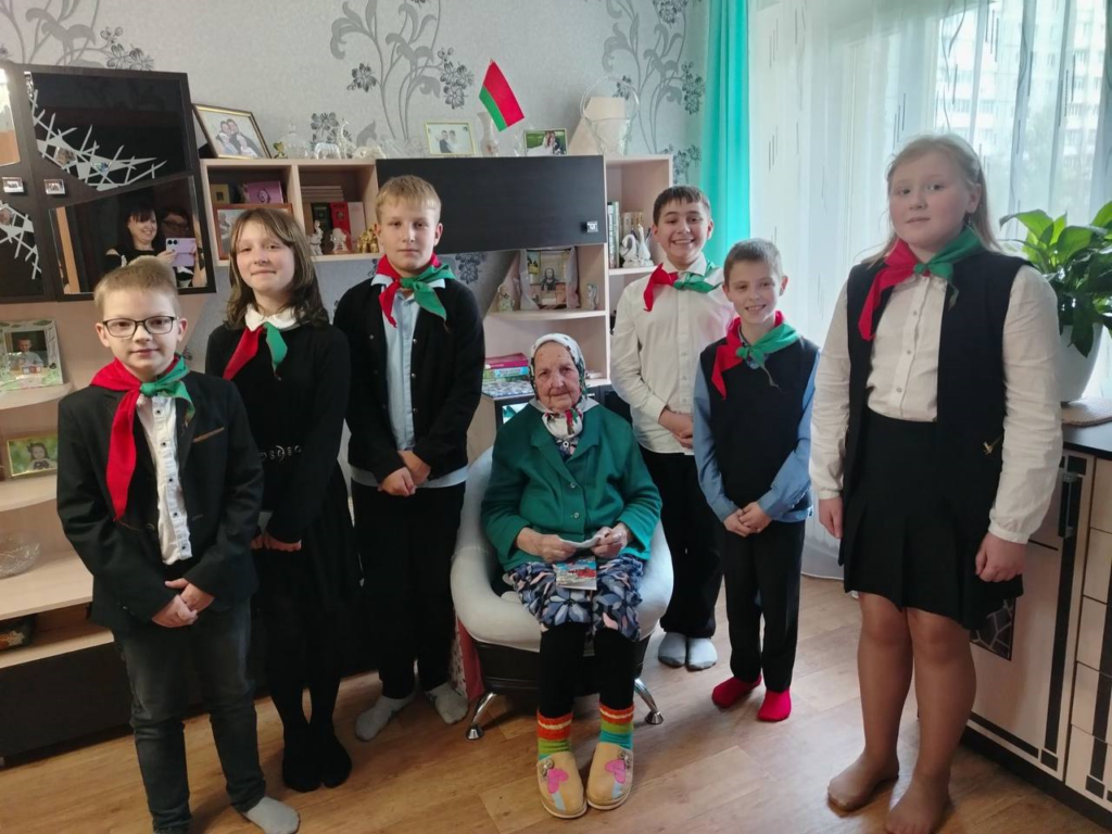 В канун празднования Дня защитника Отечества и Вооруженных сил Республики Беларусь учащиеся 5 «А» класса «Средняя школа №60 г.Гомеля» побывали в гостях у ветерана ВОВ Барсук Марии Александровны. Юные пионеры поздравили ветерана с 99-летием и с наступающим праздником Дня защитника Отечества. Ребята поблагодарили Марию Александровну за героический подвиг, за мирное небо и свободу нашей страны, пожелали ей и ее близким крепкого здоровья.