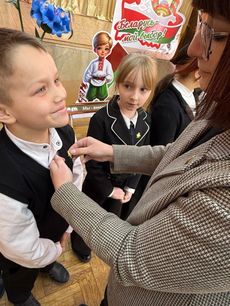 09.02.2026 в ГУО «Средняя школа №60 г. Гомеля» пионерская дружина имени Владимира Ивановича Щербацевича приняла в свои ряды 55 юных октябрят.